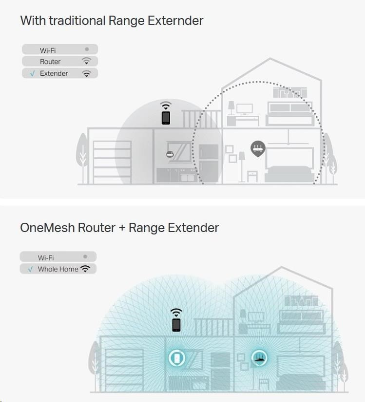 - Rozširuje duálne Wi-Fi pásmo po celom dome, aby sa odstránili mŕtve Wi-Fi zóny.