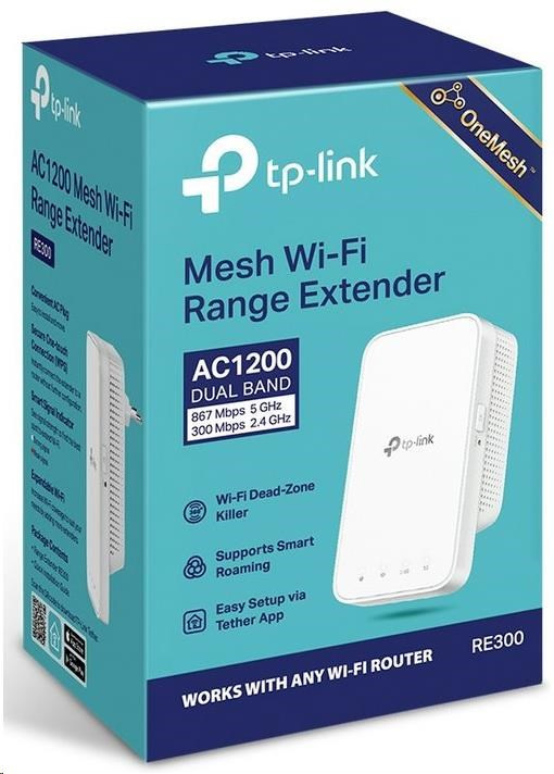 TP-Link RE300 OneMesh WiFi5 Extender/Repeater (AC1200,2,4GHz/5GHz)
