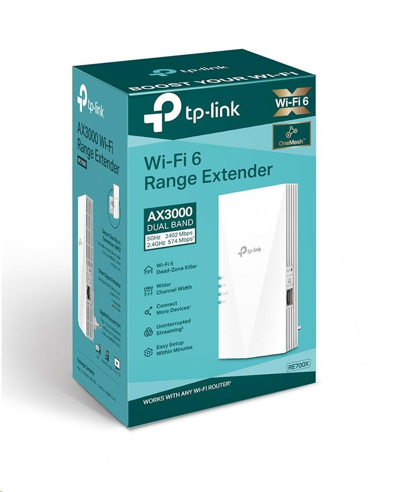 TP-Link RE700X OneMesh/EasyMesh WiFi6 Extender/Repeater (AX3000,2,4GHz/5GHz,1xGbELAN)