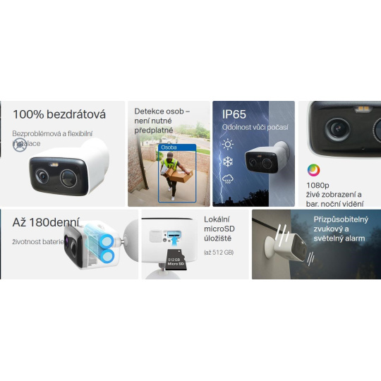 - Miestne a cloudové úložisko: Nahrávajte lokálne na 512GB kartu microSD (nie je súčasťou balenia) alebo si predplatia službu Tapo Care pre 30-dňové cloudové úložisko.**