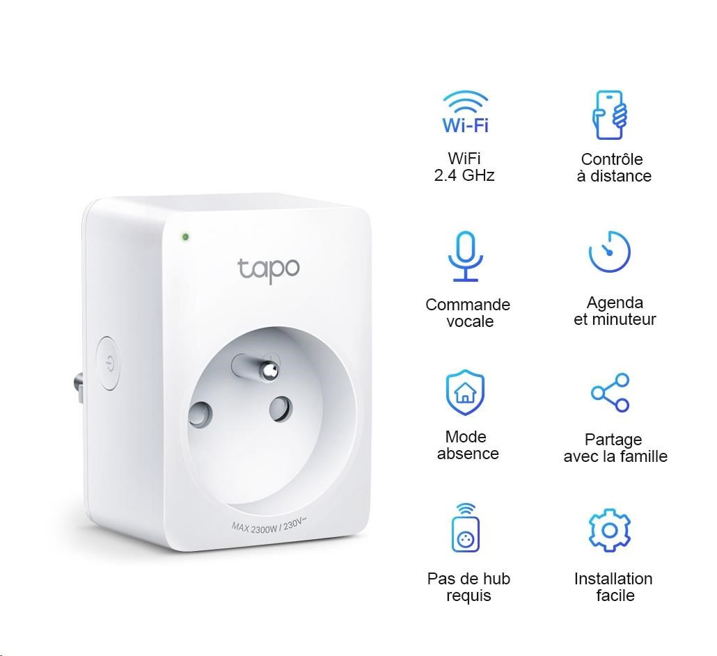 | Obsah balíka | Mini Smart Wi-Fi zásuvka Tapo P100 Rýchly štartovací sprievodca |