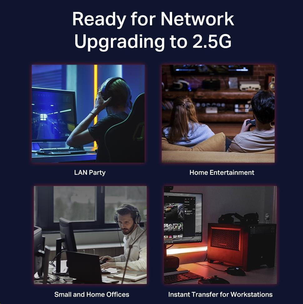 - Superrýchle pripojenie - Zabezpečuje superrýchle pripojenie k uložišti NAS 2.5G, serveru 2.5G, hernému počítaču, prístupovému bodu 2.5G WiFi 6, 4K videu a ďalším aplikáciám.