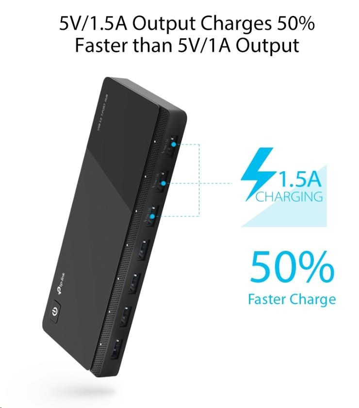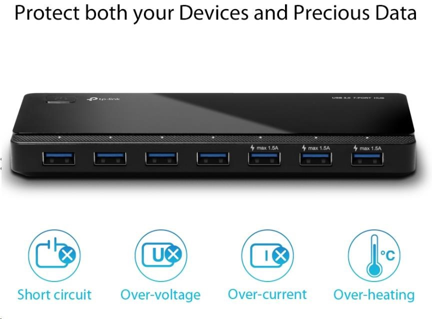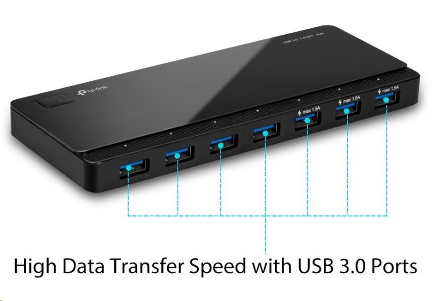 USB rozbočovač UH700 je skvelou voľbou na rozšírenie USB portov počítača na prenos dát, keď potrebujete súčasne pripojiť USB disk, USB myš, tlačiareň alebo iné zariadenia. Port USB 3.0 umožňuje prenosovú rýchlosť až 5 Gbit/s, 10-krát rýchlejšiu než USB 2.0.