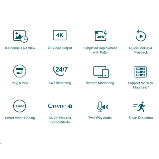 - 4K HDMI video výstup a 16MP dekódovacia kapacita: Ostré rozlíšenie obrazu až 8MP a 8kanálový displej zabezpečí, že zachytíte každý detail z každého uhla.