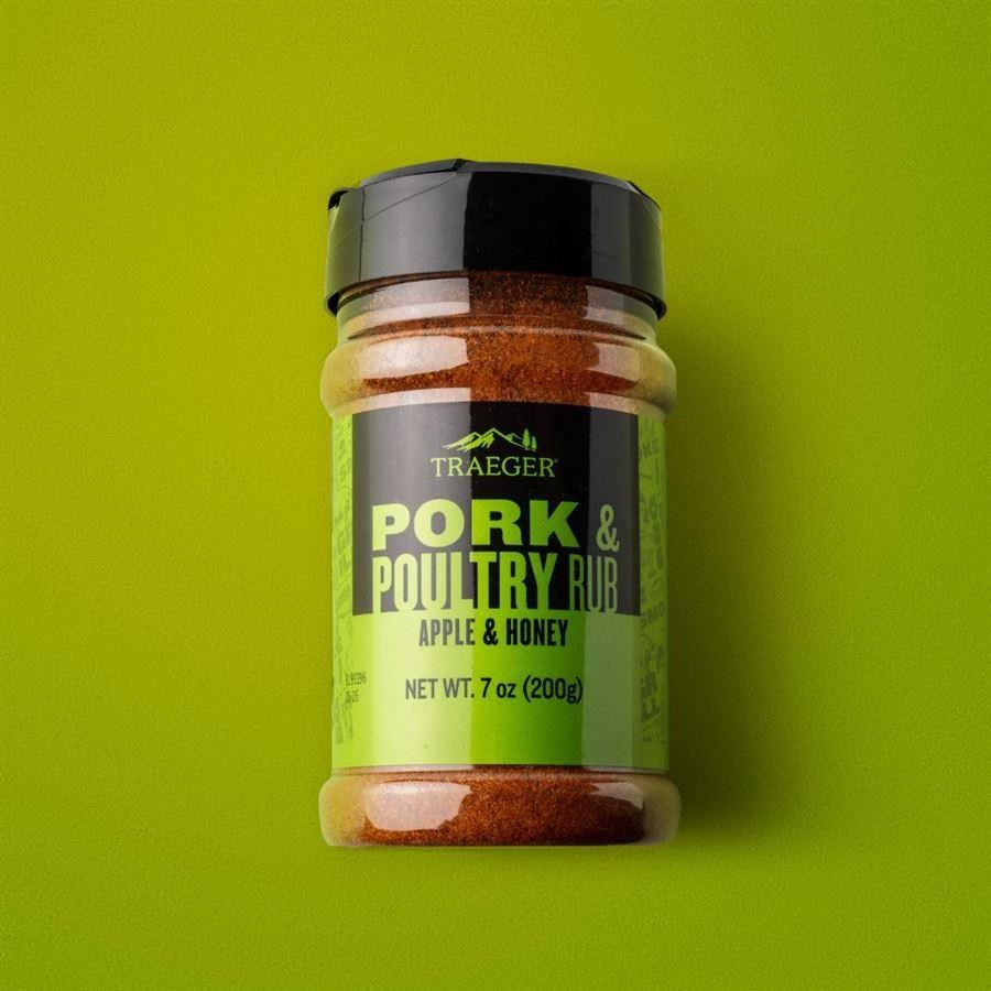 Od bravčových rezňov po kuracie na rožni – podávajte všetkým druhom bieleho mäsa extra dávku chuti s korením Traeger Pork & Poultry Rub. Paprika, cibuľa a chilli papričky pridávajú pikantnú chuť, zatiaľ čo jablko a med pridávajú nádych sladkosti, ktorá sa dokonale hodí k bravčovému, kuraciemu a ďalším jemnejším druhom mäsa.