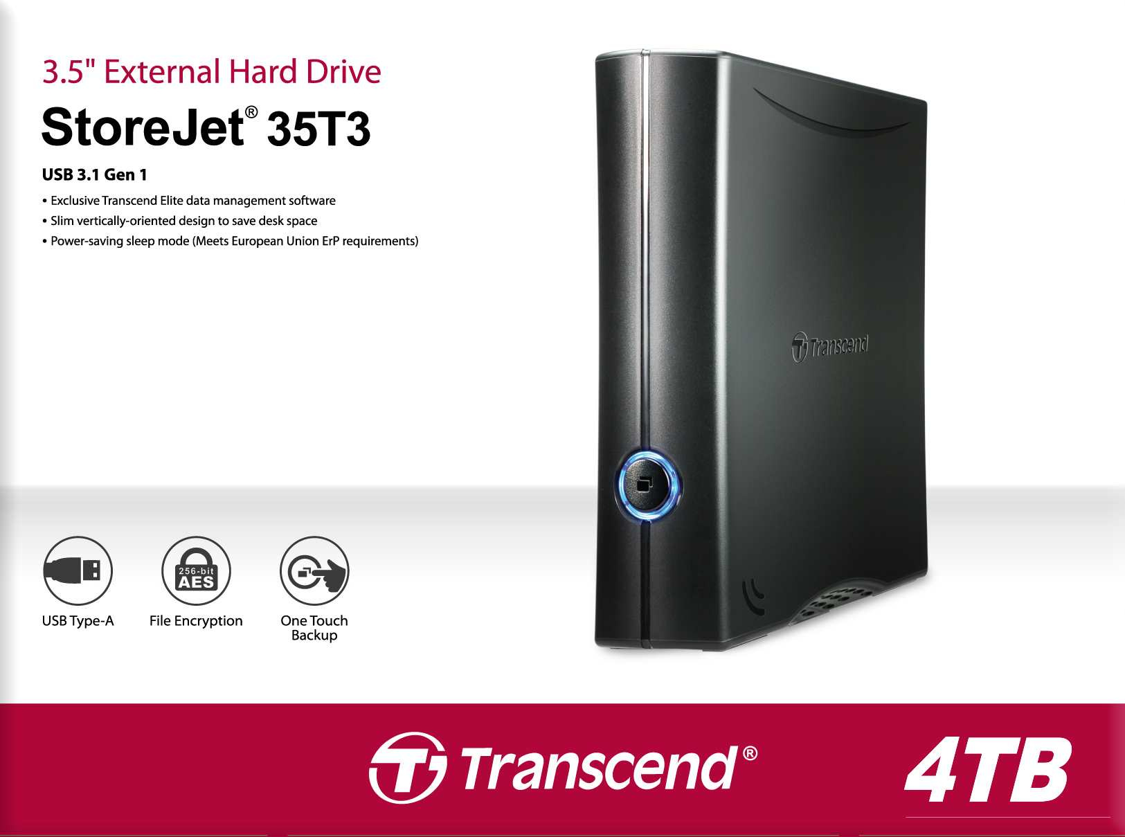 - Súčasťou je zálohovací a bezpečnostný softvér Transcend Elite