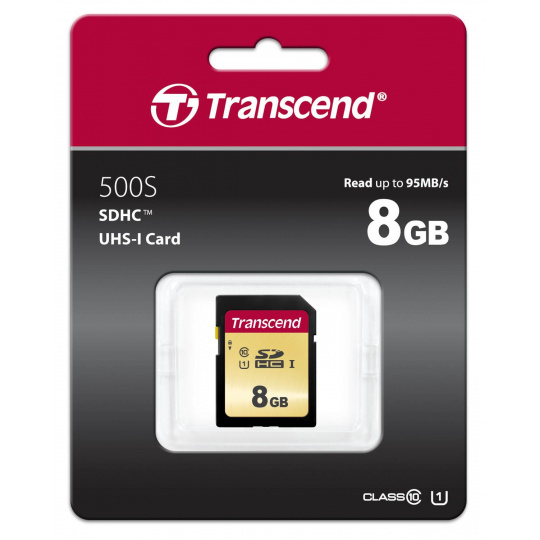 Karta TRANSCEND SDHC 8GB 500S, UHS-I U1 (R:95/W:20 MB/s)