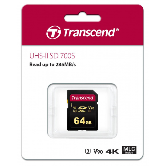 Pamäťové karty Transcend SDXC/SDHC 700S spĺňajú štandardy UHS-II Speed Class 3 (U3) a UHS Video Speed Class 90 (V90) pre videozáznamy v rozlíšení 4K Ultra HD s rýchlosťou čítania/zápisu až 285 MB/s a 180 MB/s.