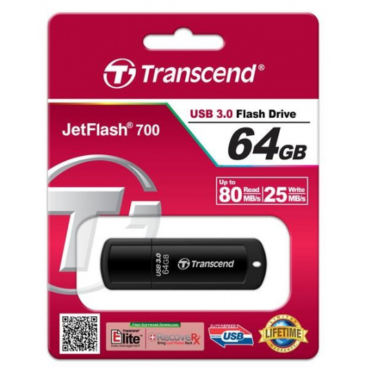 TRANSCEND Flash disk 64GB JetFlash®700, USB 3.0 (R:80/W:25 MB/s) čierna