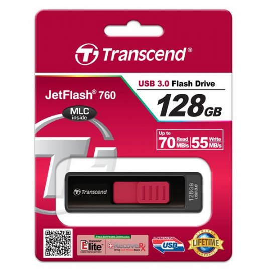 TRANSCEND Flash disk 128GB JetFlash®760, USB 3.0 (R:85/W:34 MB/s) čierna/červená