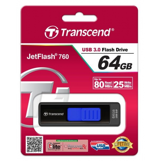 TRANSCEND Flash disk 64GB JetFlash®760, USB 3.0 (R:80/W:25 MB/s) čierna/tmavomodrá