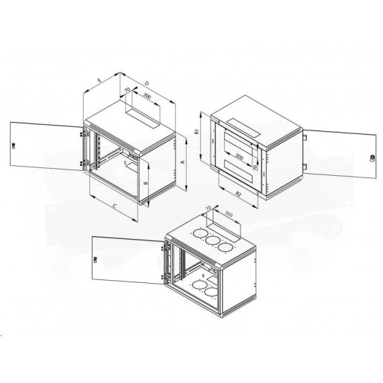 19" jednodielny rack TRITON 18U/400 mm, 6 otvorov pre ventilátory..