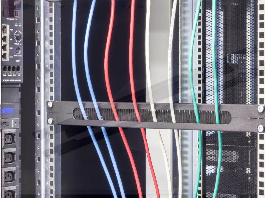 19" 1U priechodný panel, horizontálne delený, kefka, otvor 350 x 21 mm.