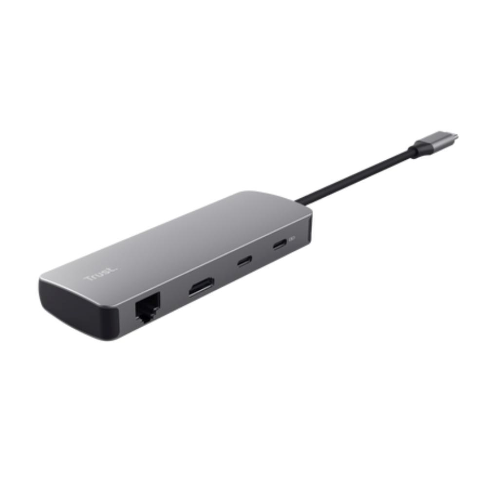 TRUST Dokovací stanice DALYX USB-C, 8v1, HDMI, RJ45, 2xUSB-C, 2xUSB-A, microSD/SD karta, šedá
