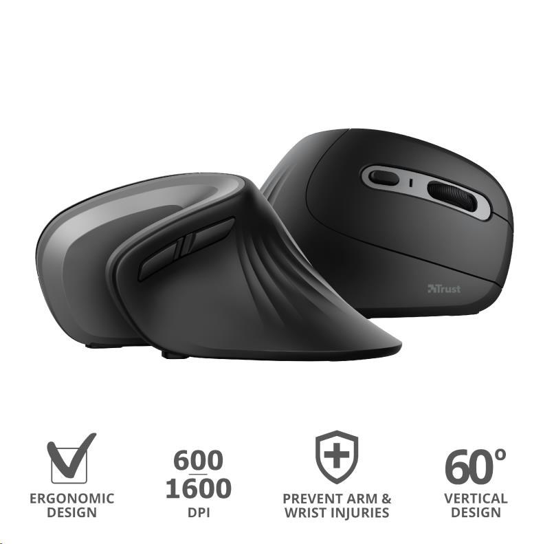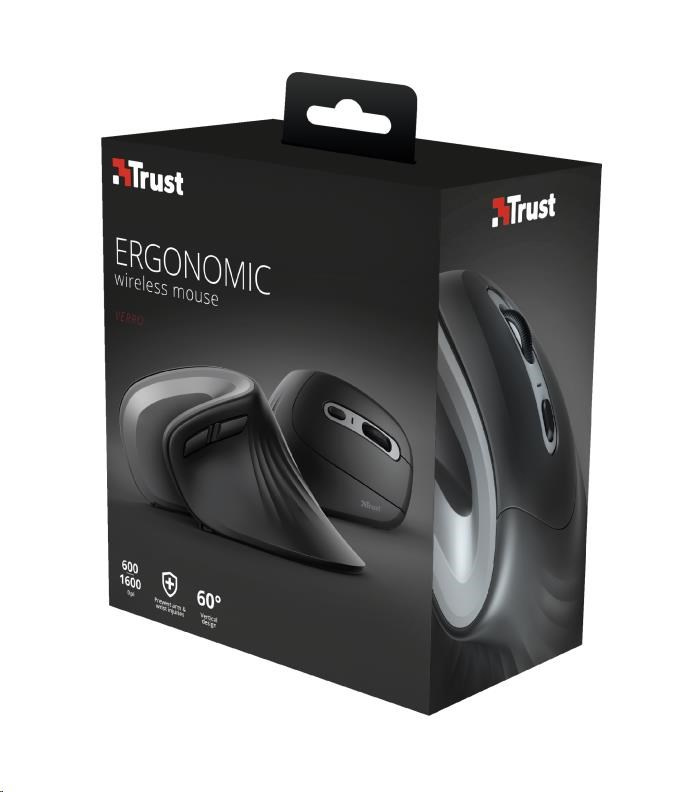 TRUST Verro Bezdrôtová ergonomická myš, čierna