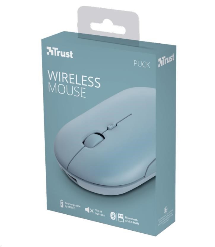 TRUST myš PUCK, bezdrôtová, USB, modrá, bluetooth