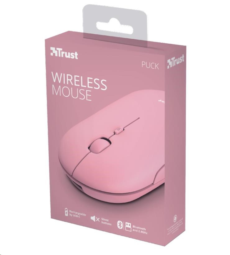 TRUST myš PUCK, bezdrôtová, USB, ružová