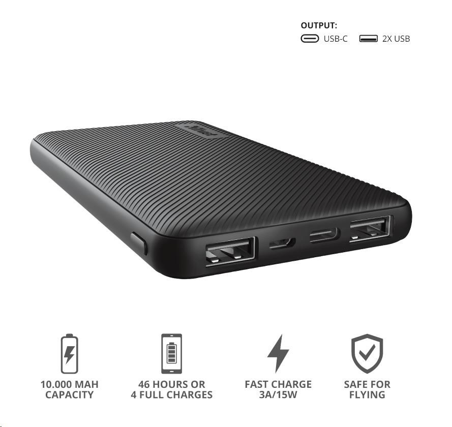 Ultra-thin powerbank for fast on-the-go charging (10.000 mAh)