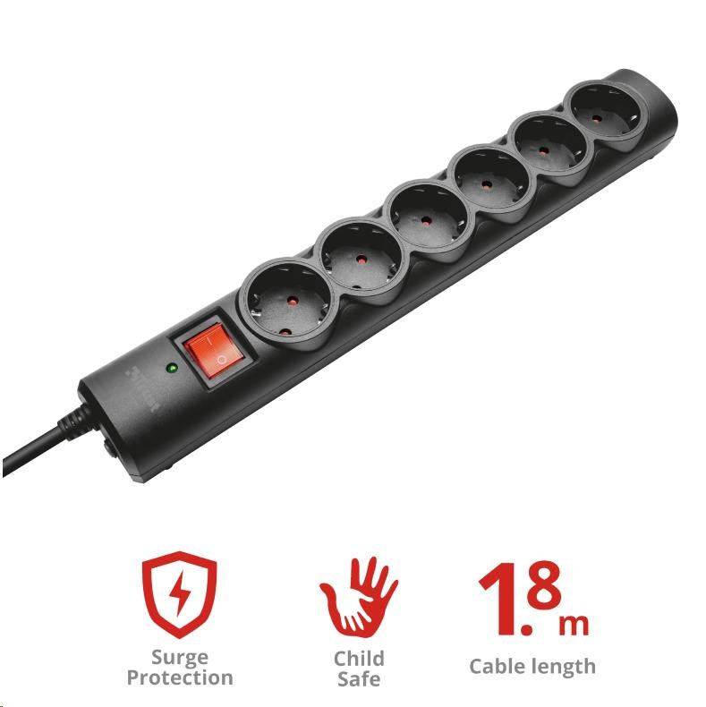 - 6 zásuviek s prepäťovou ochranou na bezpečné pripojenie a napájanie zariadení, dodáva sa s káblom s dĺžkou 1.8m