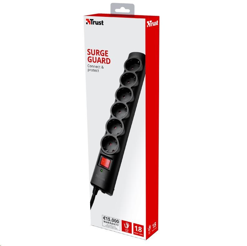 TRUST Prepäťová ochrana, predlžovací kábel, prepäťová ochrana 6 portov
