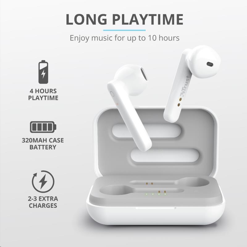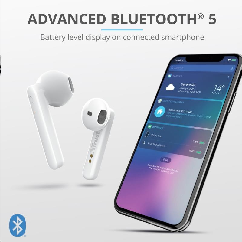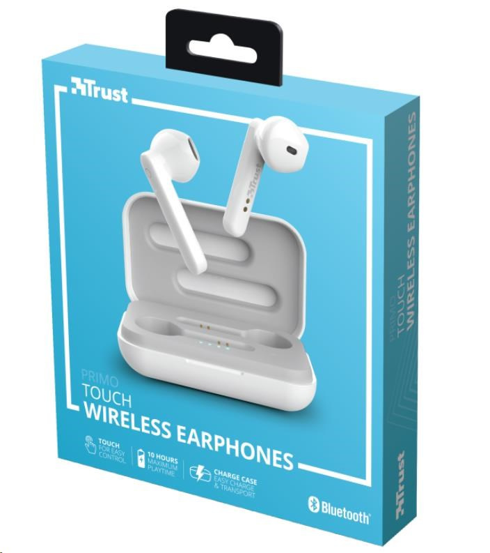 TRUST sluchátka Primo Touch Bluetooth Wireless Earphones - white