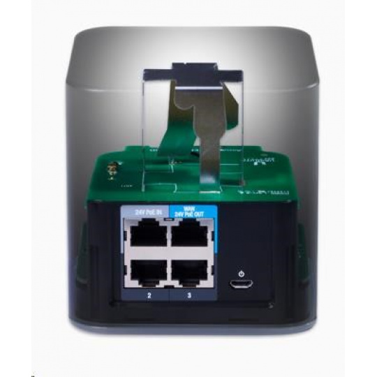 router má 3x 10/100Mbps LAN (prvý port LAN podporuje PoE IN), 1x 10/100Mbps LAN/WAN s podporou PoE Out, napájací konektor microUSB a rádiovú časť 2x2 MIMO WiFi s modulačnou rýchlosťou 300Mbps (2.4GHz).