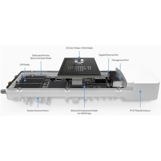 aF-5XHD je v súčasnosti najvýkonnejšie a najlepšie vybavené zariadenie airFiber od spoločnosti Ubiquiti Networks. Revolučný integrovaný obvod airFiber LTU dokáže spracovať viac ako 2 milióny paketov za sekundu pri reálnej rýchlosti prenosu dát 1 Gb/s+ (TDD) v bezlicenčnom pásme 5 GHz pri 1024QAM (plánovaný firmvér by mal podporovať až 4096QAM s ešte vyššou priepustnosťou). Medzi ďalšie kľúčové funkcie patrí 2x Gigabit LAN, pričom jeden port je určený len na správu, synchronizácia času prostredníctvom GPS, špecializovaný spektrálny analyzátor, vysoká odolnosť voči vode (IP67) a nastaviteľná šírka kanálov 10/20/30/40/50/60/80 a 100 MHz. AirFiber 5XHD je vodotesný a ideálny do všetkých poveternostných podmienok vďaka veľmi dobrej konštrukcii a priloženému gumovému adaptéru.