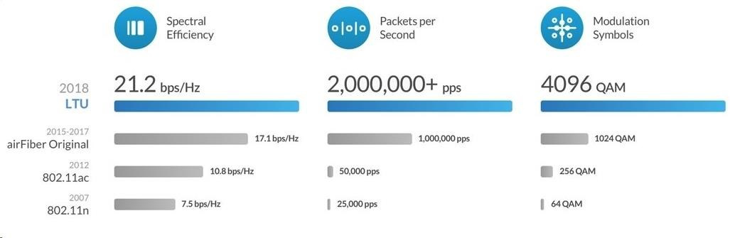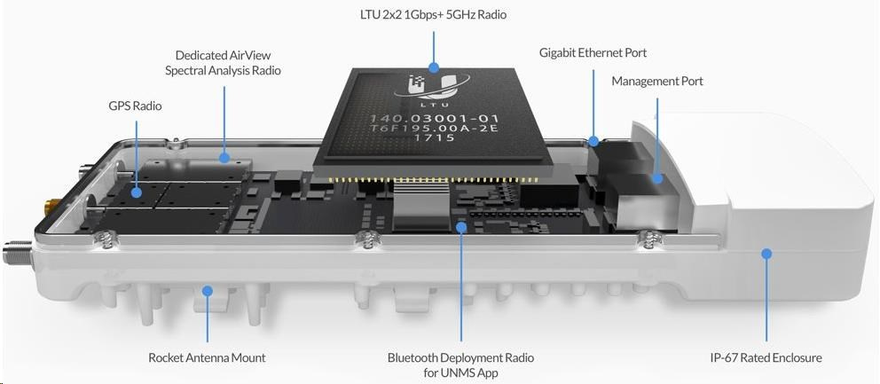 aF-5XHD je v súčasnosti najvýkonnejšie a najlepšie vybavené zariadenie airFiber od spoločnosti Ubiquiti Networks. Revolučný integrovaný obvod airFiber LTU dokáže spracovať viac ako 2 milióny paketov za sekundu pri reálnej rýchlosti prenosu dát 1 Gb/s+ (TDD) v bezlicenčnom pásme 5 GHz pri 1024QAM (plánovaný firmvér by mal podporovať až 4096QAM s ešte vyššou priepustnosťou). Medzi ďalšie kľúčové funkcie patrí 2x Gigabit LAN, pričom jeden port je určený len na správu, synchronizácia času prostredníctvom GPS, špecializovaný spektrálny analyzátor, vysoká odolnosť voči vode (IP67) a nastaviteľná šírka kanálov 10/20/30/40/50/60/80 a 100 MHz. AirFiber 5XHD je vodotesný a ideálny do všetkých poveternostných podmienok vďaka veľmi dobrej konštrukcii a priloženému gumovému adaptéru.