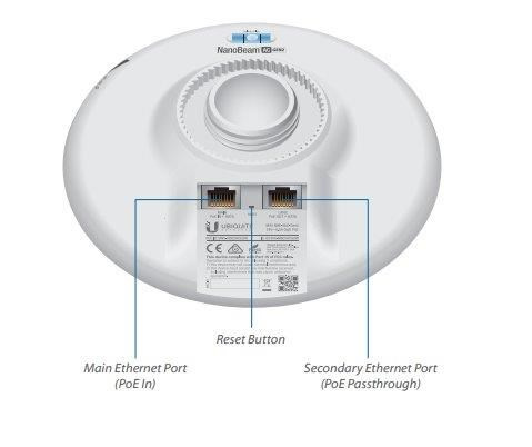 vnútri NanoBeamu sa nachádza výkonný procesor MIPS Atheros 74KC s frekvenciou 720 MHz, na ktorý nadväzuje 128 MB operačnej pamäte typu DDR2 a 8 MB pamäte Flash. Sieťový port podporuje 10/100/1000 Ethernet a možno ho použiť na napájanie jednotky pomocou dodaného pasívneho gigabitového adaptéra PoE 24V/0,5A (aktívne PoE podľa 802.3af nie je podporovaný).
