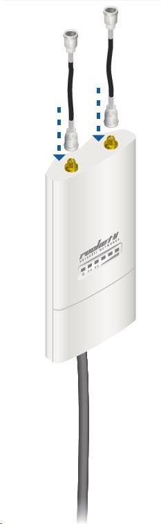 je to robustné 13dbi všesmerové anténne riešenie pre prístupové body pracujúce v pásme 2.4GHz a pomocou 802.11n v kombinácii s technológiou MIMO. Anténa má dva konektory RSMA typu žena. Súčasťou dodávky sú dva vodotesné pigtaily RSMA na pripojenie k jednotke Rocket M2, držiak pre túto jednotku a montážna súprava na stožiar, pozri. obr.
