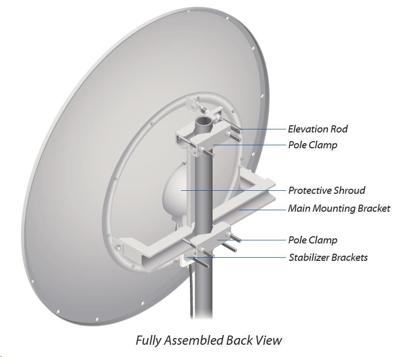 dvojpolarizačná 5GHz anténa so ziskom 34 dBi vhodná pre jednotku Rocket M5. Využíva horizontálnu aj vertikálnu polarizáciu, čím nahrádza dve samostatné antény a šetrí náklady na prenájom miesta pre anténu. Anténa je vhodná na jednoduché vytváranie spojení PtP. Dodáva sa aj s vodotesným príslušenstvom na pripojenie k jednotke Rocket M5.