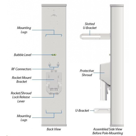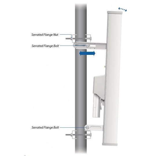dvojpolarizačná sektorová anténa 15 dBi vhodná pre Rocket M2 (2x2 MIMO). Uhol vyžarovania 120°. Využíva horizontálnu aj vertikálnu polarizáciu a nahrádza dve samostatné antény, čím ľahko vytvára prístupový bod s vysokou priepustnosťou.