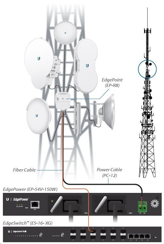 edgepower je výkonné rackové napájacie riešenie s webovou správou vhodné na napájanie smerovačov a prepínačov EdgePoint. EdgePower obsahuje 2 šachty pre modulárne napájacie zdroje, ktoré možno zlúčiť prostredníctvom riadenia (max. výkon 300 W) alebo automaticky zálohovať (max. výkon 150 W). Napájacie zdroje sú hot-swap a možno ich vymeniť za chodu.