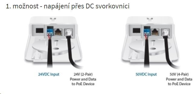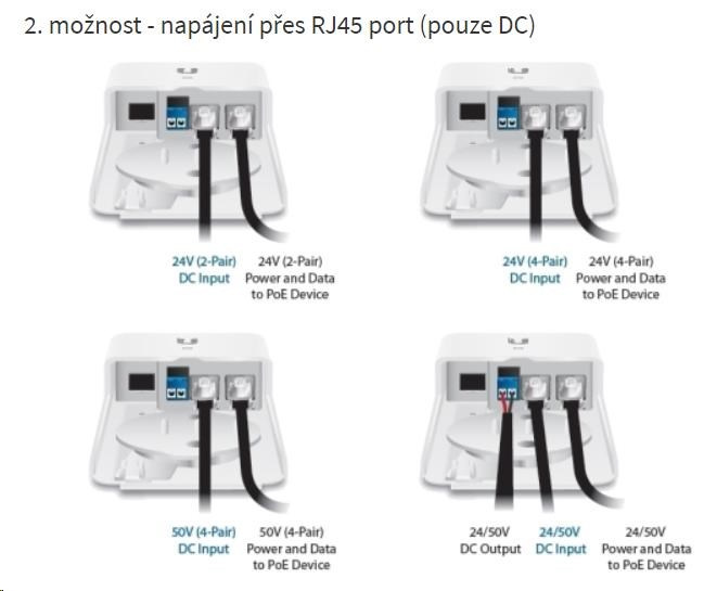 fiberPOE obsahuje 2 ethernetové porty, 1 SFP slot a DC svorkovnicu. Na napájanie konvertora sú k dispozícii celkom 3 možnosti: prvá je DC svorkovnica, druhá a tretia sú cez porty RJ45. Prevodník preto môže byť napájaný z oboch ethernetových portov, ale dáta prenáša len port označený ako POE. Všetky 3 možnosti pracujú v rozsahu 16 až 50 V DC.