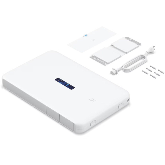 Popis produktu Dream Wall je další z řady zařízení UniFi All-in-one. Ukrývá v sobě bránu s firewallem, Wi-Fi 6 access point, NVR a switch s funkcí PoE. Jednotka poskytuje široké možnosti připojení do sítě. Nabízí možnost připojení 10Gbps SFP+ portem nebo ethernetovým portem 2.5Gbps. Pro připojení dalších zařízení v síti LAN pak nabízí 10Gbps SFP+ port spolu se 17 ethernetovými 1Gbps porty, z nichž 12 disponuje funkcí PoE (4x POE++, 4x POE+ a 4x POE). Z výroby je zařízení osazeno jedním hot-swap zdrojem s výkonem 550W a k dispozici je druhá pozice pro redundanci. Maximální spotřeba zařízení činí 532W včetně připojených napájených zařízení. Radiová část podporuje nejnovější standard WiFi 6 (802.11ax), je zpětně kompatibilní se staršími standardy a disponuje technologií MIMO 2x2 (2.4 Ghz) a 4x4 (5 GHz) s maximální modulační rychlostí 300 + 2400 Mbps. Ke všem důležitým informacím o zařízení a síti se dostanete ihned díky integrovanému displeji s úhlopříčkou 4,7". Pro ukládání kamerových záznamů slouží předinstalovaná 512GB microSD karta a zařízení disponuje také vlastním SSD diskem s kapacitou 128GB. Podporované UniFi služby • UniFi Network Controller • UniFi Protect • UniFi Access • UniFi Talk • UniFi Connect Výhody UniFi řešení • Zero Handoff Roaming - bezvýpadkový přechod mezi jednotlivými AP • Wireless uplink (hodí se tam, kam není možné dostat datový kabel) • Až 4 SSID • Detailní statistiky provozu • Guest síť • Load balance - udržování rovnoměné zátěže / přepínání klientů • Omezování rychlosti pro každé SSID Technické parametry Bezdrátové vlastnosti Bezdrátové frekvence:2.4 + 5 GHz (dual band) WiFi standardy:802.11n, 802.11a, 802.11ac, 802.11b/g, 802.11ax Přenosová rychlost - 5GHz [Mb/s]:2402 Přenosová rychlost - 2.4GHz [Mb/s]:300 Vysílací výkon 2.4GHz [dBm]:23 Vysílací výkon 5GHz [dBm]:26 Šifrování:WEP, WPA, WPA2, WPA3 2.4GHz MIMO:2 x 2 5GHz MIMO:4 x 4 Typ antény:Vestavěná Roaming:Ano Zisk antény [dBi]:6 Konektory a rozhraní Rychlosti WAN:(1) 100/1000/2500Mbps Slot na paměťové karty:microSD - až 512GB Rychlost LAN:(17) 10/100/1000Mbps Gigabit LAN:Ano Optické rozhraní:(2) 10Gbps Ostatní:Dotykový displej, Bluetooth Napájení Typ napájení:Ze sítě (230V) Typy PoE:PoE-Out (pouze) Podporované PoE-Out standardy:802.3af, 802.3at, 802.3at - ultra PoE (60W) Redundantní napájení:Ano Počet PoE Out portů:12 PoE budget [W]:422 Max. spotřeba energie [W]:532 Napájení přes konektor/svorkovnici:230V AC Fyzické charakteristiky Provedení:Na zeď Použití:Vnitřní Tlačítka:Reset Provozní teplota [°C]:-10 až 40 Hmotnost [g]:8600 Šířka [mm]:342 Výška [mm]:549 Hloubka [mm]:62 Hardware CPU:ARM Cortex-A57 Frekvence CPU [MHz]:1700 Počet CPU jader:4 RAM [MB]:4096 Software Předinstalovaný kontroller:UniFi Protect, UniFi controller Operační mód:AP Router Management:UniFi controller Výchozí IP adresa:192.168.1.1 Výchozí jméno a heslo:Nastavuje se při prvním spuštění.
