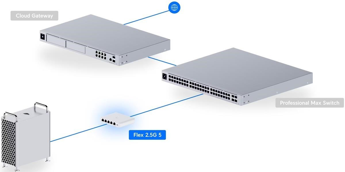 Popis produktu Switch Flex Mini 2.5G od Ubiquiti je kompaktní přepínač určený pro rozšíření sítě v domácích i kancelářských prostředích. Nabízí pět 2.5 Gigabitových portů, které umožňují snadnou integraci zařízení s vyššími přenosovými rychlostmi, jako jsou moderní přístupové body, servery nebo NAS úložiště. Switch podporuje správu prostřednictvím platformy UniFi Controller, což usnadňuje jeho konfiguraci a dohled nad sítí. Jednou z jeho klíčových funkcí je podpora napájení přes ethernet, což znamená, že zařízení lze napájet přímo přes síťový kabel pomocí PoE vstupu na prvním portu (802.3af/at), případně pak pomocí přiloženého USB-C adaptéru. Svým minimalistickým designem je ideální pro umístění na pracovním stole nebo třeba montáž na stěnu. Je plně kompatibilní se systémy UniFi a umožňuje snadné škálování podle potřeby. Obsah balení • Zařízení • Napájecí adaptér USB-C (5V / 1A) Technické parametry Konektory a rozhraní Rychlost LAN:(4) 10/100/1000/2500Mbps Sériový port:RJ45 Napájení Typ napájení:PoE, USB-C Typy PoE:PoE-In (pouze) Max. spotřeba energie [W]:6,4 Napájení přes konektor/svorkovnici:5V / 1A Fyzické charakteristiky Provedení:Desktop Šasi:Plastové Tlačítka:Reset Provozní teplota [°C]:-20 až 45 Šířka [mm]:90 Výška [mm]:117 Hloubka [mm]:21 Software Management:UniFi Network.