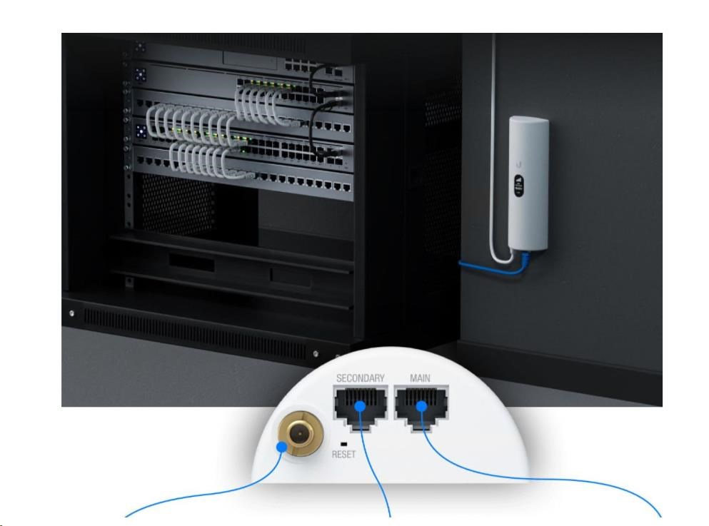Zariadenie Ubiquiti U-LTE-Pro môžete umiestniť kdekoľvek, kde je najlepší signál, pretože ho možno napájať pomocou 802.3at PoE+ z prepínača, napr. ako napríklad UniFI PoE Switch. Môžete ho pripevniť na stenu pomocou montážnej konzoly alebo máte možnosť ho prilepiť a pripevniť na povrch. Zariadenie má sekundárny port, ktorý ponúka premostenie a pasívny priechod PoE (užitočné pre kameru, prístupový bod alebo iné zariadenie).