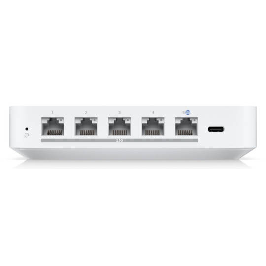 Popis produktu Ubiquiti Gateway Max je všestrané zařízení. Disponuje (4) LAN 1/2.5 Gbps porty a (1) WAN 2.5 Gbps portem. Bráně nechybí ani podpora IDS/IPS a to s rychlosti směrování až 1.5 Gbps. Pro lepší Vaše soukromí a bezpečí na internetu podporuje VPN od WireGuard, L2TP, i OpenVPN. Zařízení je vhodné pro malé až středně velké firmy. Napájení brány probíhá skrze USB-C. Klíčové vlastnosti • Podpora IDS/IPS • Podpora VPN (WireGuard, OpenVPN, L2TP) • Vysoká rychlost portů 2.5 Gb/s Obsah balení • Zařízení • Napájecí adaptér včetně kabelu Technické parametry Konektory a rozhraní Rychlosti WAN:(1) 100/1000/2500Mbps Rychlost LAN:(4) 10/100/1000/2500Mbps Gigabit LAN:Ano Napájení Typ napájení:USB-C Max. spotřeba energie [W]:9,6 Napájení přes konektor/svorkovnici:5V / 3A Fyzické charakteristiky Provedení:Desktop Ventilátory:Bez ventilátoru Šasi:Plastové Tlačítka:Reset Provozní teplota [°C]:-10 až 40 Šířka [mm]:142 Výška [mm]:30 Hloubka [mm]:128 Hardware CPU:Quad-Core ARM Cortex-A53 Frekvence CPU [MHz]:1500 Počet CPU jader:4 RAM [MB]:2048 Obecné Propustnost NAT [Mb/s]:1500 Software Podporované VPN:L2TP, IPSec, OpenVPN, WireGuard Management:UniFi Network Podpora IPv6:Ano.