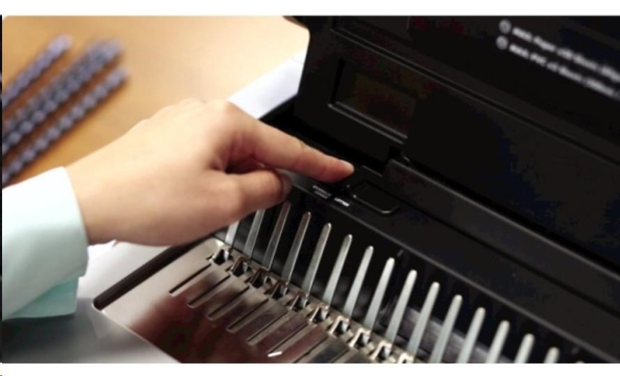 Špičkový dizajn, funkčná presnosť a komfortná obsluha sú vlastnosti tohto vazača s elektrickým pohonom děrovacieho nástroja. Děrovací kapacita až 25 listov 80 g papiera. Kapacita vazby až 500 listov. Je optimálnou voľbou pre pohodlnú prácu pri kancelárskom použití. Vkladanie děrovaných listov shora a presné nastavenie dorazu zväzku významne pomáha zabezpečiť jeho bezchybné perforovanie.
