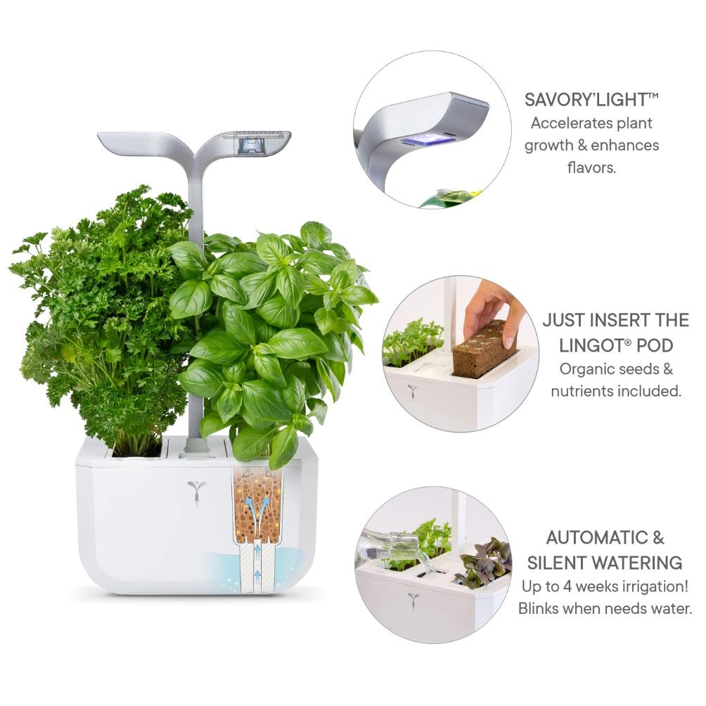 S Exky Classic nebolo domáce pestovanie nikdy jednoduchšie. Vložte sadenicu Lingot, naplňte nádrž na vodu a záhradka sa postará o zvyšok. Jej intuitívny dizajn znamená, že na to, aby ste si užívali čerstvé, domáce produkty počas celého roka, nepotrebujete žiadne záhradnícke zručnosti.