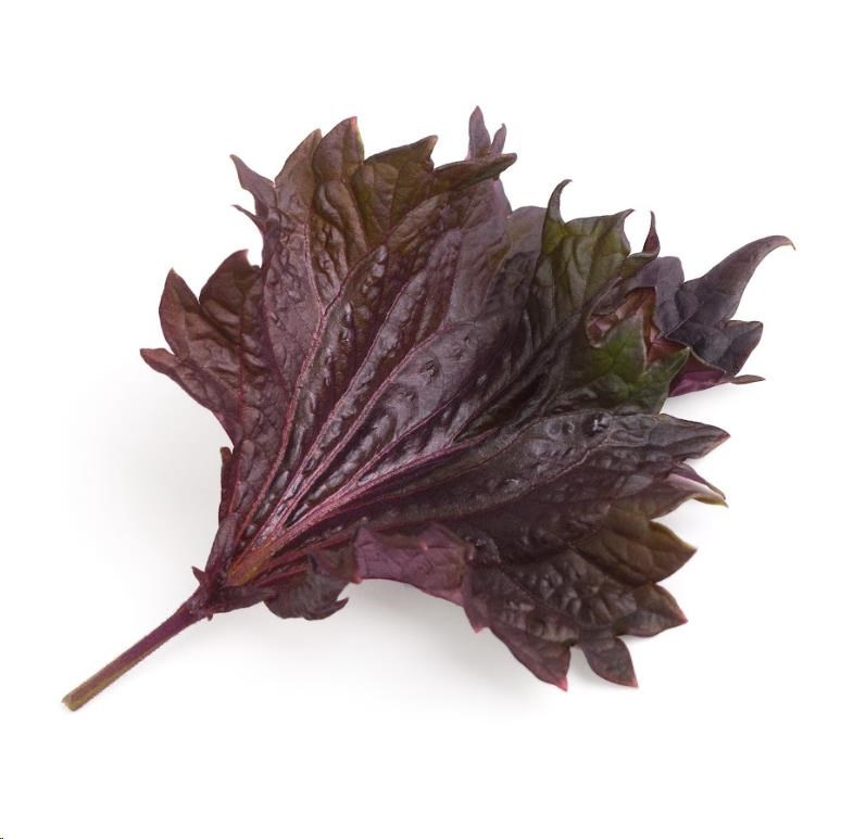 Fialový Shiso: Výrazná chuť s tónmi bazalky, fenikla a mäty, vhodné do sushi, šalátov a nakladanej zeleniny. Má antibakteriálne vlastnosti, podporuje trávenie a obsahuje veľa antioxidantov.