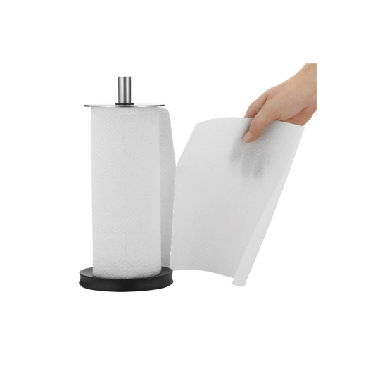- Stabilná základňa: Široká a zaťažená spodná časť zaisťuje, že držiak pevne stojí na pracovnej ploche aj pri odtrhávaní utierok jednou rukou.