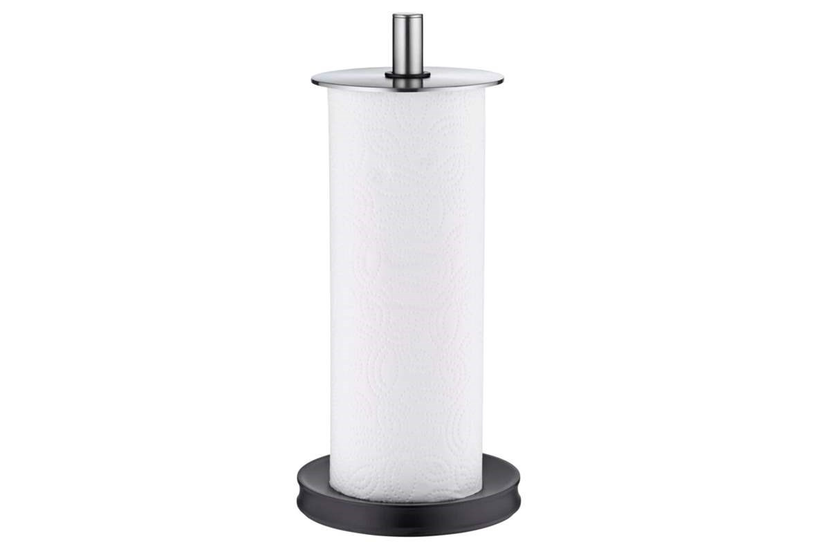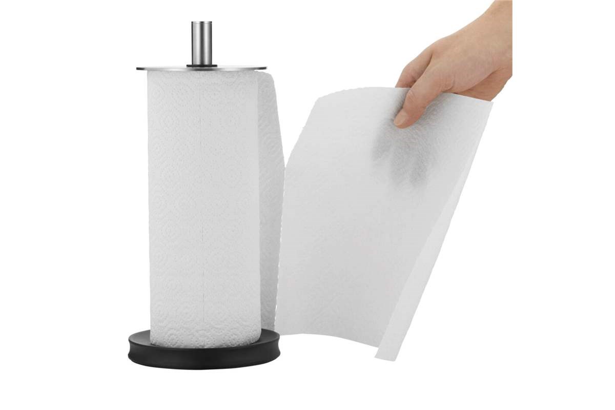 - Stabilná základňa: Široká a zaťažená spodná časť zaisťuje, že držiak pevne stojí na pracovnej ploche aj pri odtrhávaní utierok jednou rukou.