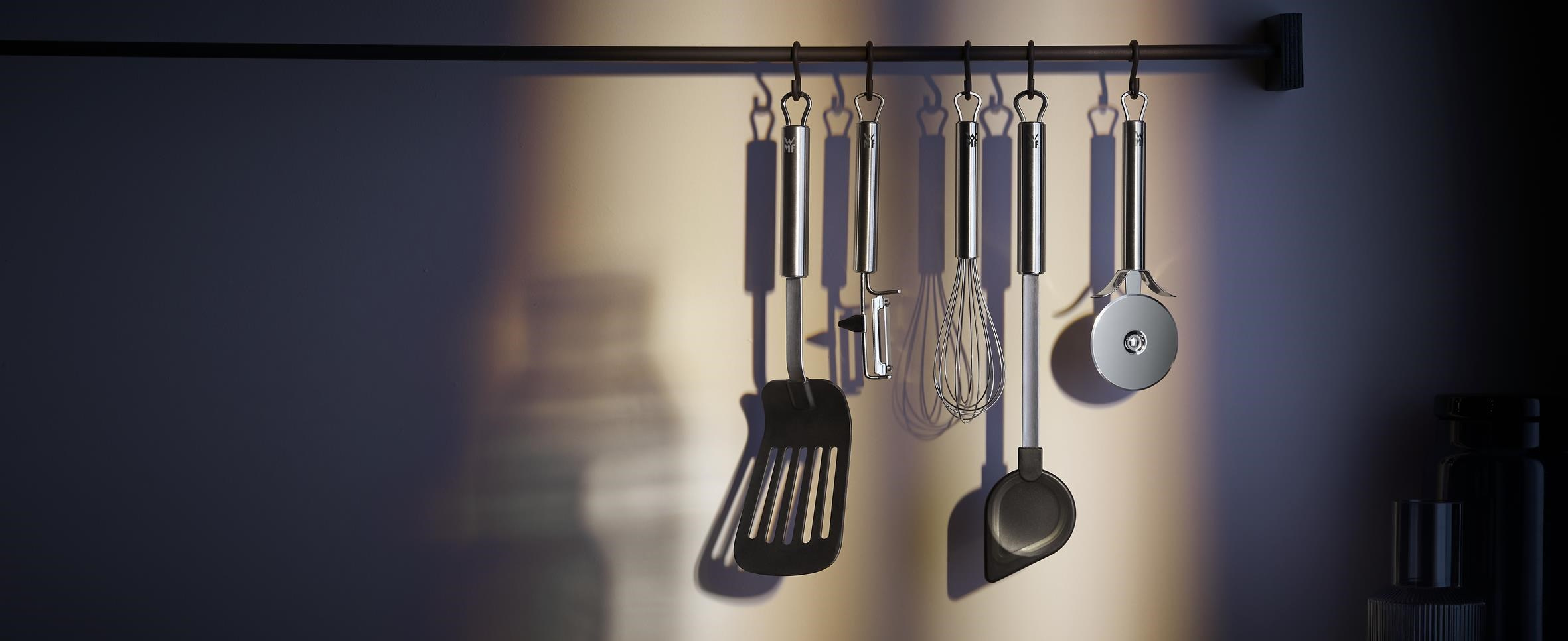Rad Profi Plus ponúka rad praktických kuchynských pomocníkov v jednotnom a modernom dizajne pre skutočne každý krok a každý typ prípravy. Otáčajte pečené zemiaky, steaky, ryby alebo karamelizované ovocie s obracačkami z nerezovej ocele a neprefukovacieho plastu, čím zabránite poškodeniu svojho riadu. Táto profesionálna rada obsahuje aj škrabky, naberačky, paličky na mäso a mnoho ďalšieho. Všetky výrobky sú prémiovej kvality a vďaka závesnej rúčke môžu byť vždy na dosah. Prosto varenie a servírovanie vo veľkom štýle.
