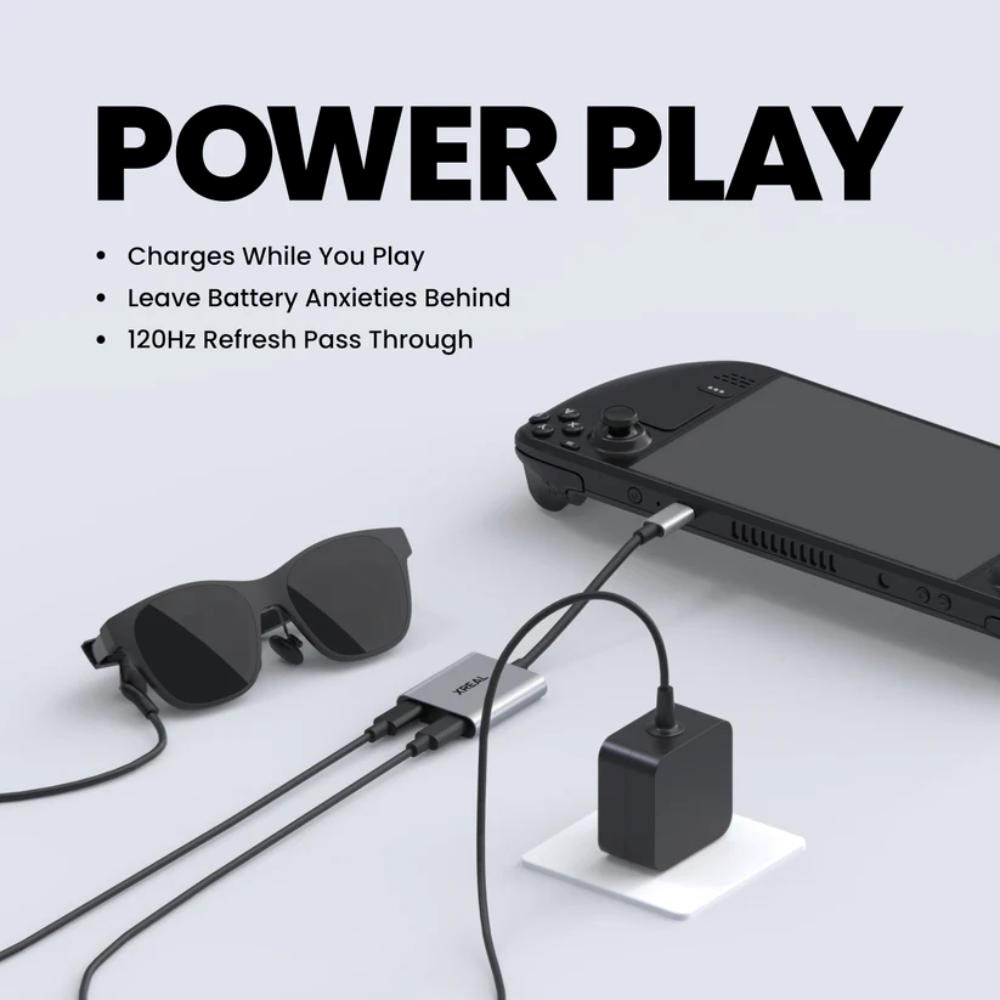 Power Play: Zvýšte výkon svojich herných relácií a streamovania pri používaní okuliarov XREAL AR. Nabíjajte a hráte, aby vaše herné dobrodružstvo nikdy nezastavila vybité batérie.