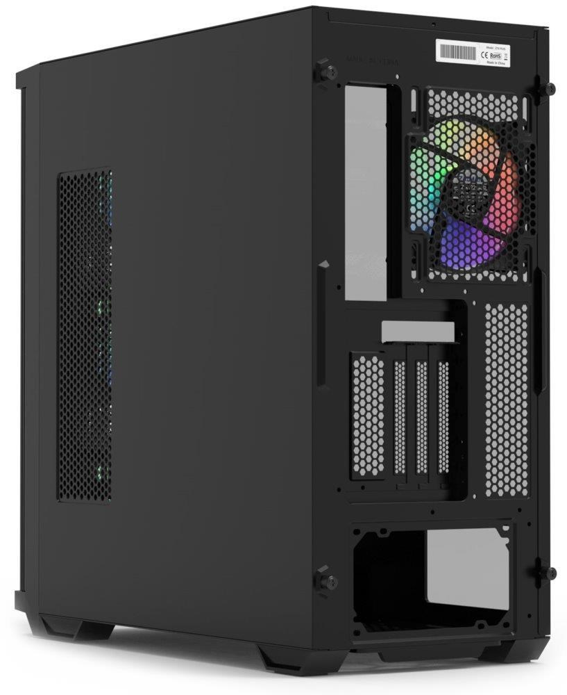 Počítačová skriňa v prevedení Middle tower. Na vrchnom paneli sú umiestnené dva USB 3.0 porty, jeden USB 3.1 typ C port, slúchadlový výstup a vstup pre mikrofón. Skriňa je osadená celkovo štyrmi ventilátormi s ARGB podsvietením o veľkosti 120 mm. Priehľadná bočnica spolu s perforovaným predným panelom zabezpečuje vytríbený dizajn. Perforovaný predný panel je navyše možné vymeniť za priložené tvrdené sklo a dať tak ešte viac vyniknúť štýlovému ARGB podsvieteniu predných ventilátorov. Dômyselné riešenie umožňuje pohodlné umiestnenie až 360 mm dlhého výmenníka vodného chladenia na prednej alebo hornej strane. Vo skrini je dostatok priestoru pre chladič CPU do výšky až 173 mm a grafickú kartu o dĺžke až 395 mm. Súčasťou skrine je interný ARGB ovládač pre až 6 ventilátorov a sada prachových filtrov. Dodávaná je bez zdroja.