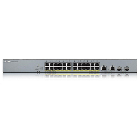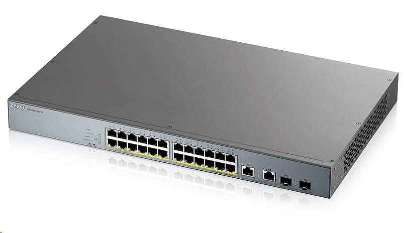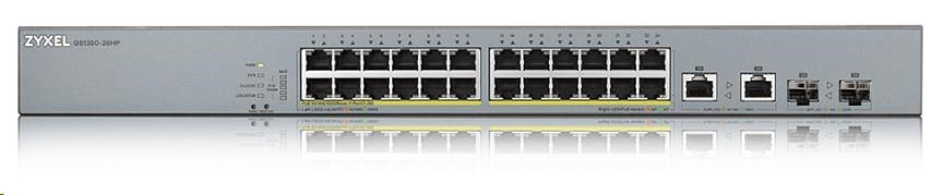 Zyxel GS1350-26HP 26portový inteligentný spravovaný CCTV PoE switch, dlhý dosah, 375W, 24x GbE, 2x combo RJ45/SFP